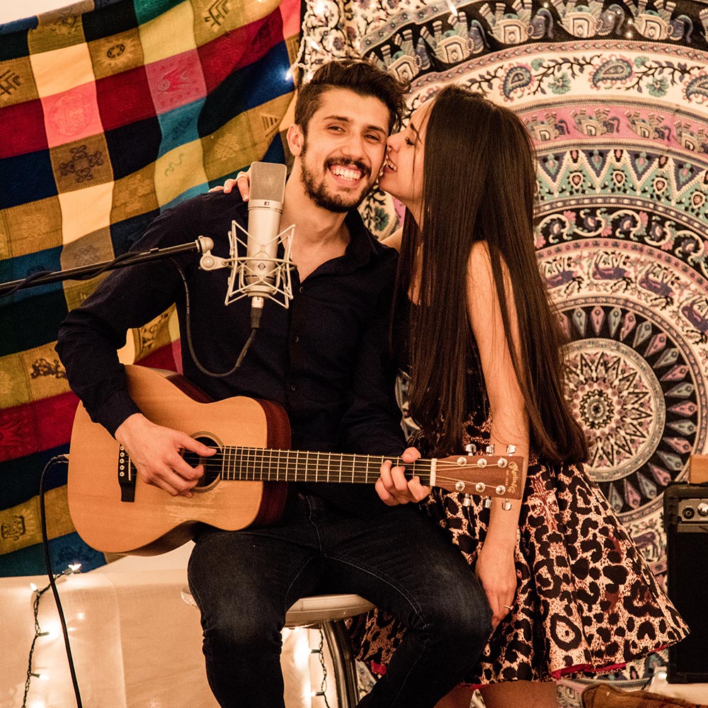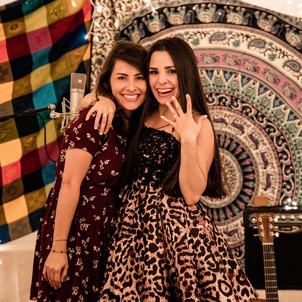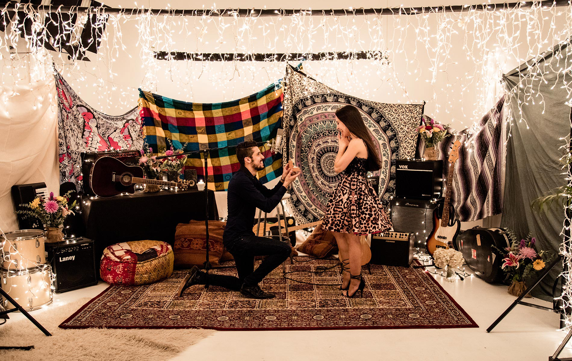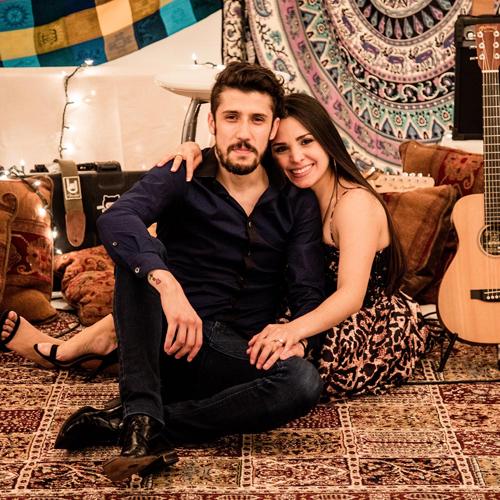 This was the cutest, most romantic and special proposal ever... At least in my heart! It was our first anniversary so I could sort of sense it was going to be a special day, but I didn’t have the certainty of what that special day would be about. It was on a Thursday and Juan sent me a video saying he had prepared a game for me, he had spread some clues that lead to each other with beautiful messages and memories. The last one that lead to my dad who said he was driving me to a dinner date at 8pm. When we got there, my dad dropped me off and said he had to rush to a business meeting at Brickell. I noticed we were at Juan’s workplace; when they opened the door, Juan was sitting on a high bench, playing guitar and singing along the song he wrote for me on my birthday. Luisa and Camilo, his amazing co-workers and friends, told me to sit on a bench in front of Juan to listen to the whole song. When the song came to an end, I clapped and walked up to him to give him a hug... Then he started talking and among other things remembering the promise God gave him about me on Ecclesiastes 4: 9-11 …finally he popped out the question and I said yes! Suddenly I hear a lot of people cheering and clapping!! It turns out that my family, friends and Pastors sneaked in as soon as I sat on the bench to listen… Everything looked so beautiful! Juan together with other accomplices prepared everything at the studio from decorations to cameras to make this an unforgettable moment. I loved every single detail from the decorations to my lovely ring, but more importantly I feel happy an honored to get to build a home, a family and a life together. P.D. If you ever want to hear another story, ask Juan about his experience getting the ring!